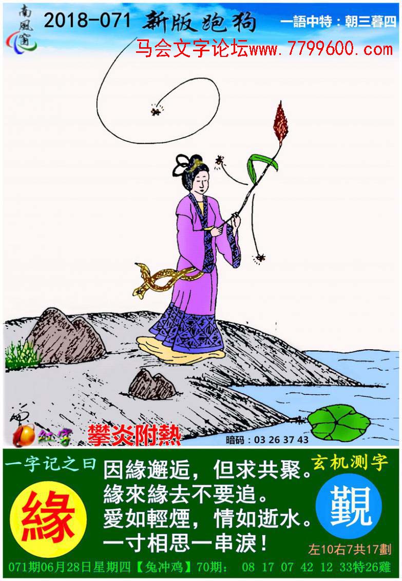 071期新版跑狗一字記之曰:【緣】