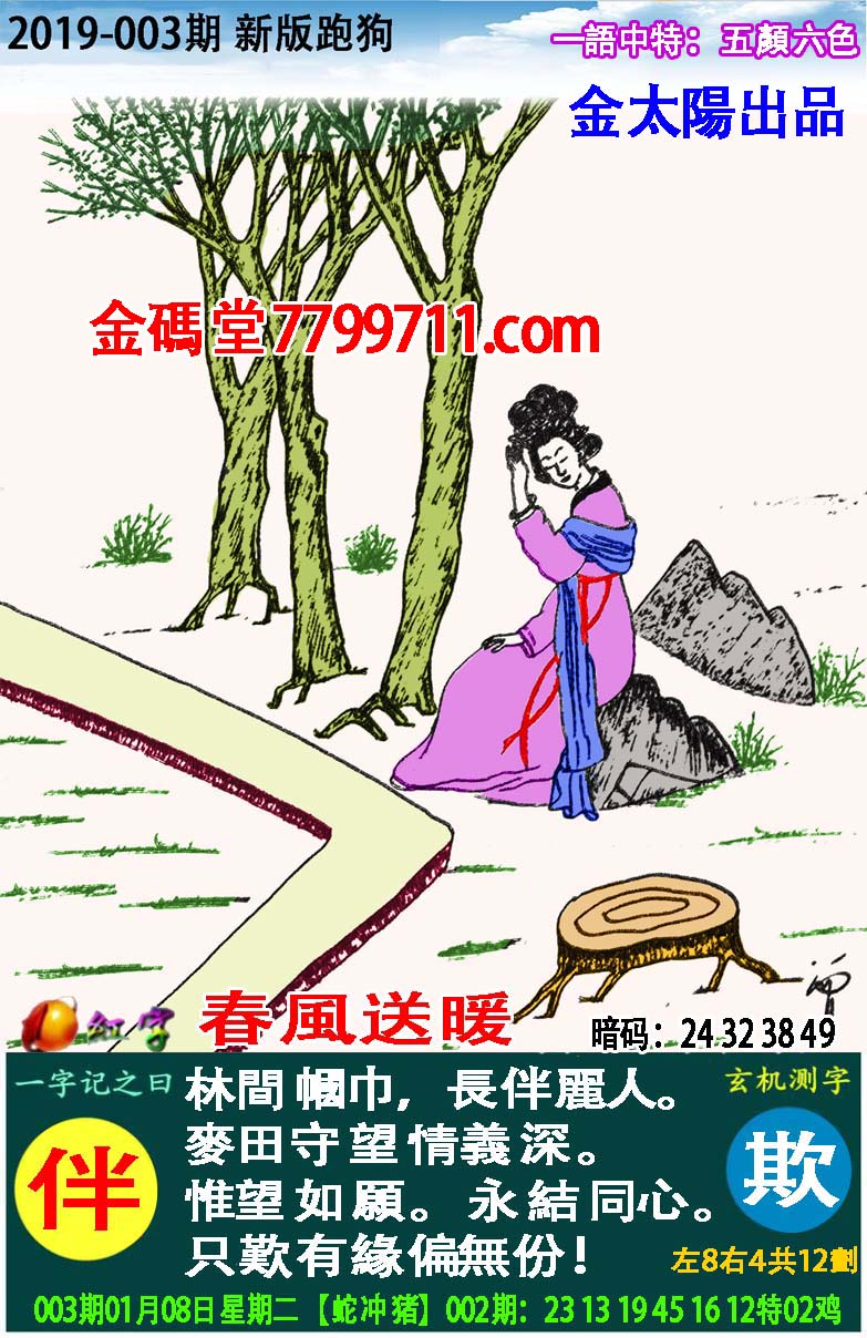 003期:新版跑狗一字記之曰【伴】玄機測字:《欺》