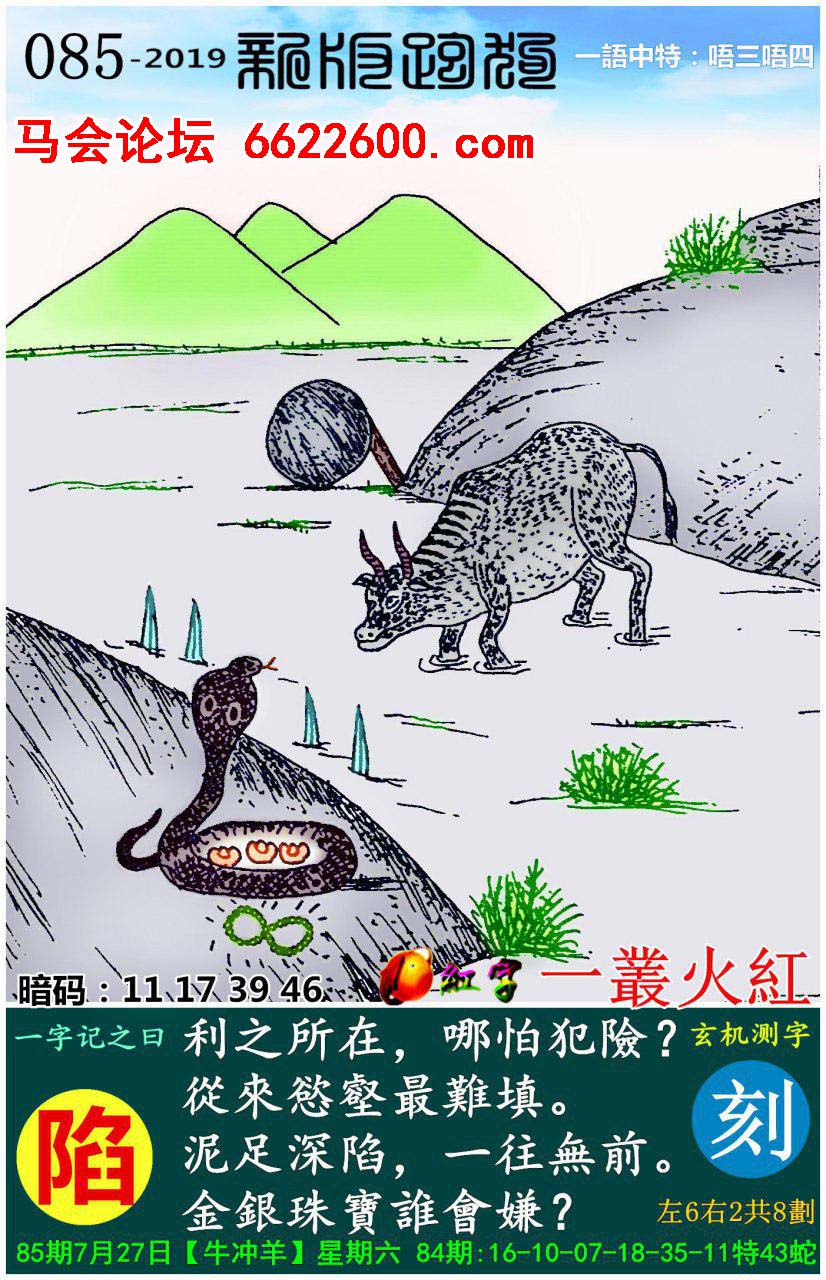 085期新版跑狗一字記之曰:【陷】