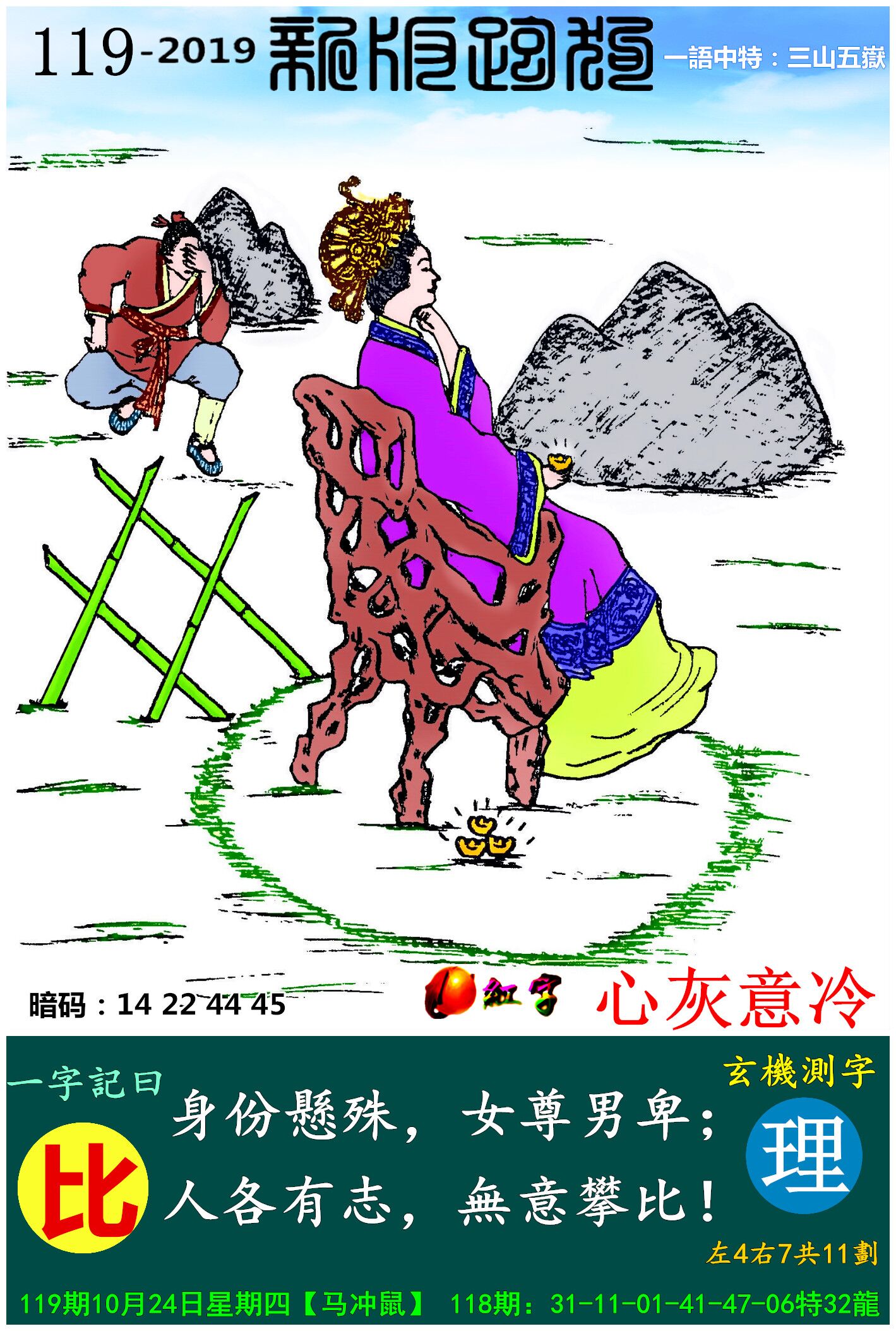主题 : 119期:新版跑狗一字記之曰【比】玄機測字:《境》