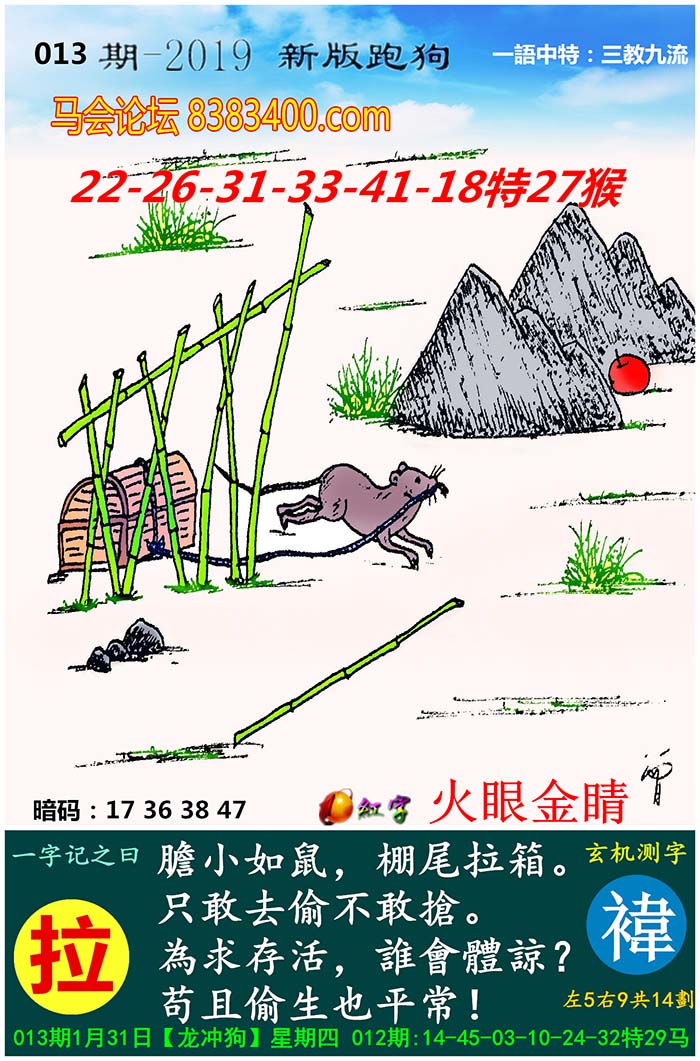 019期新版跑狗一字記之曰:【活】