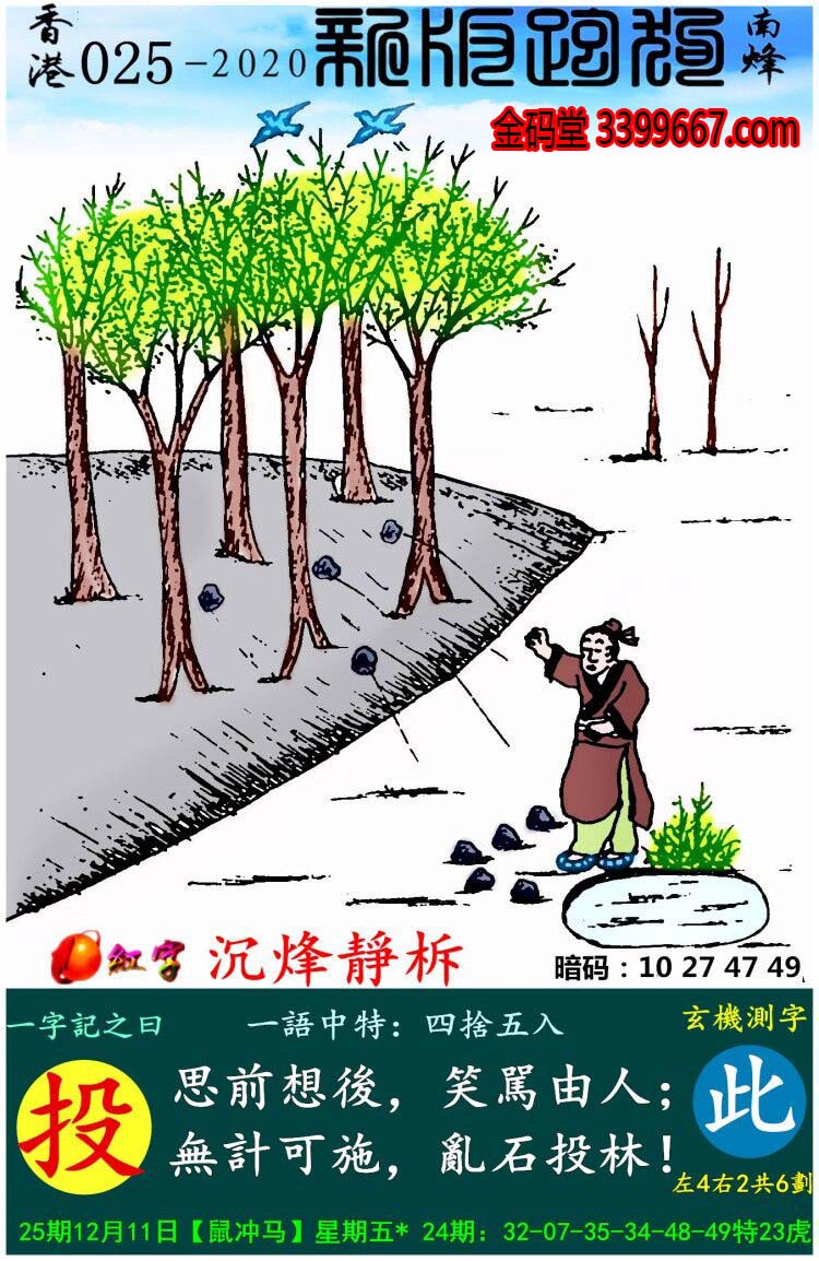 038期:新版跑狗一字記之曰【投】玄機測字:《鐘》