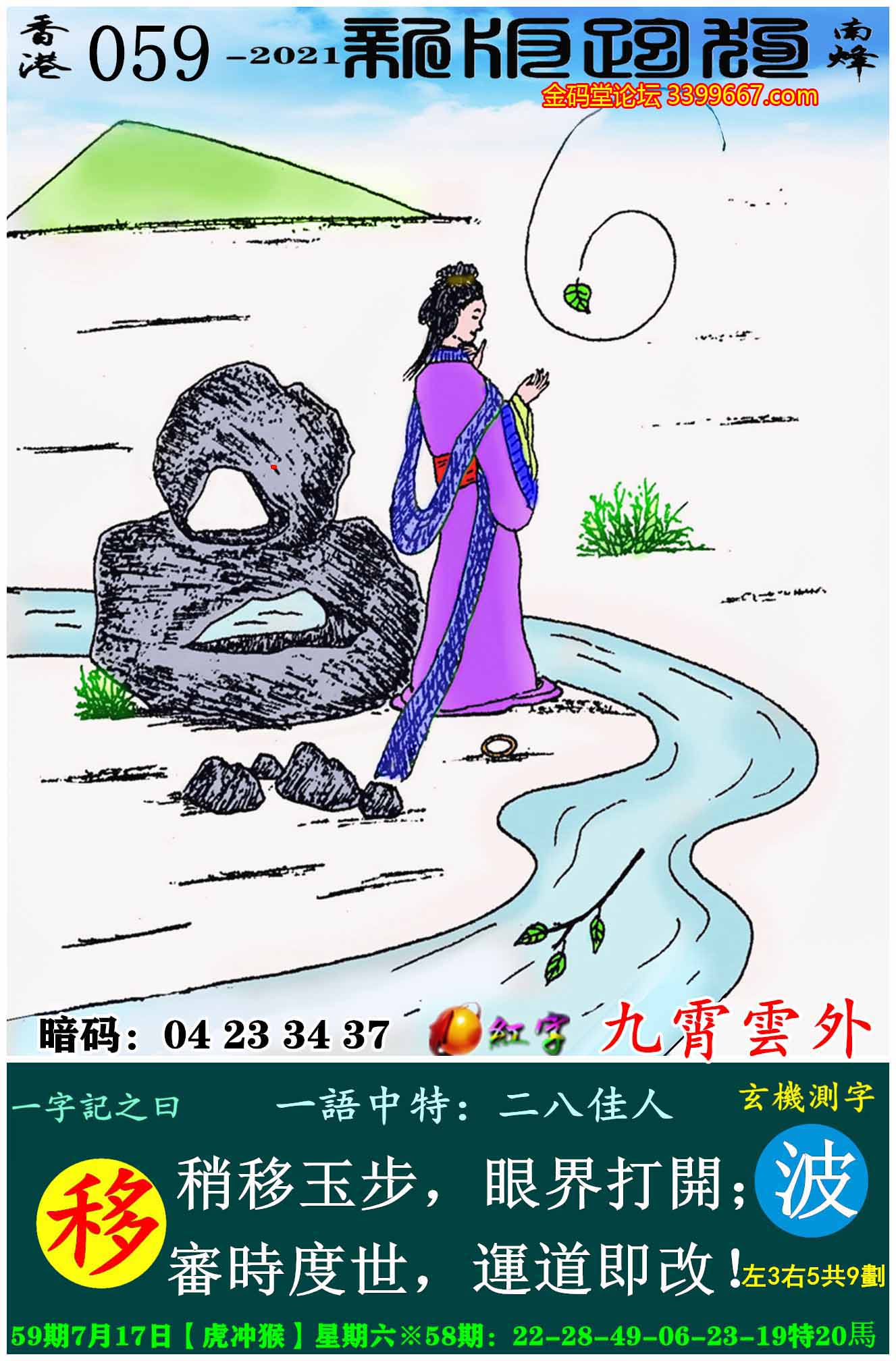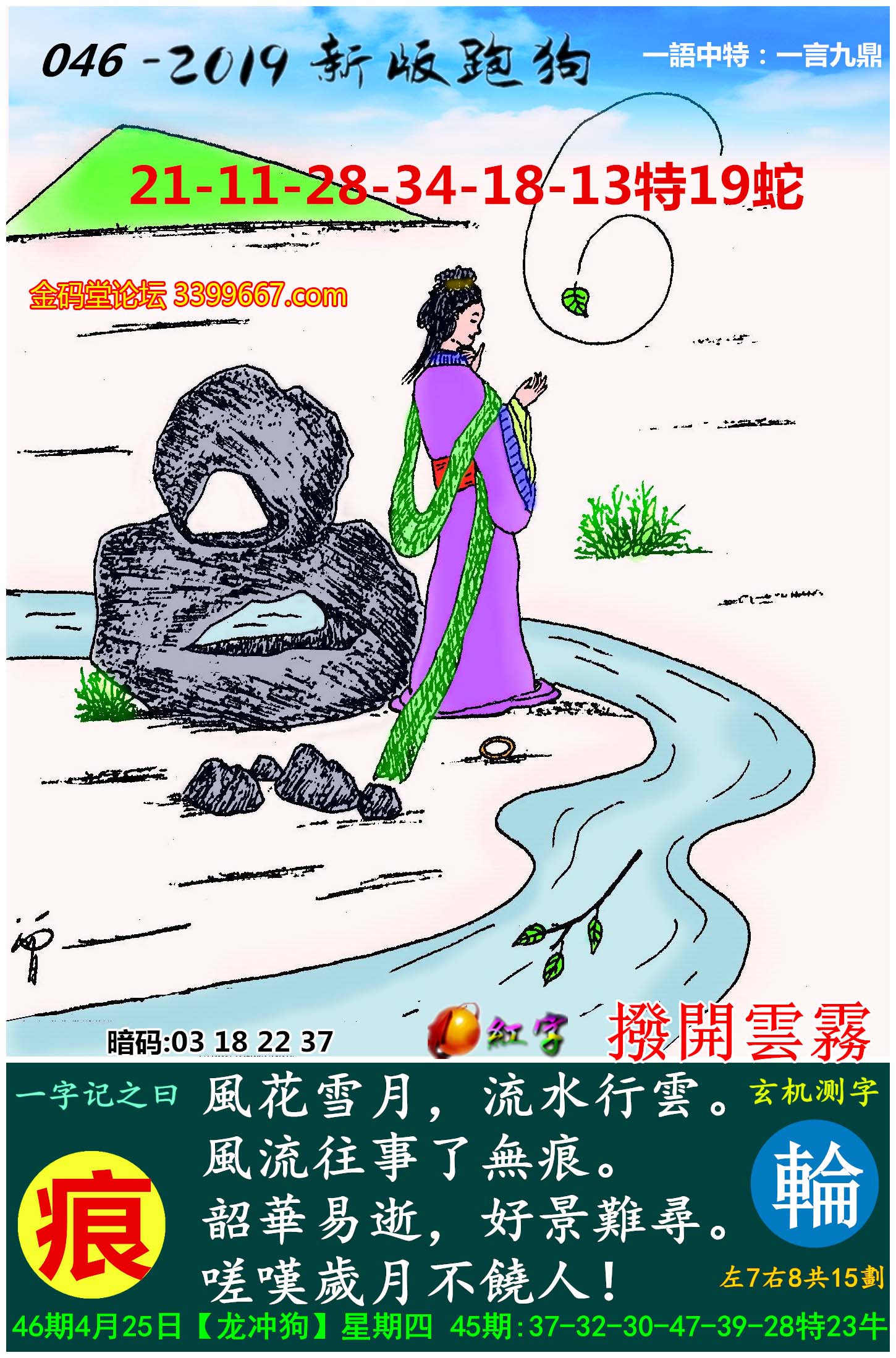 主题 : 059期:新版跑狗一字記之曰【移】玄機測字:《波》
