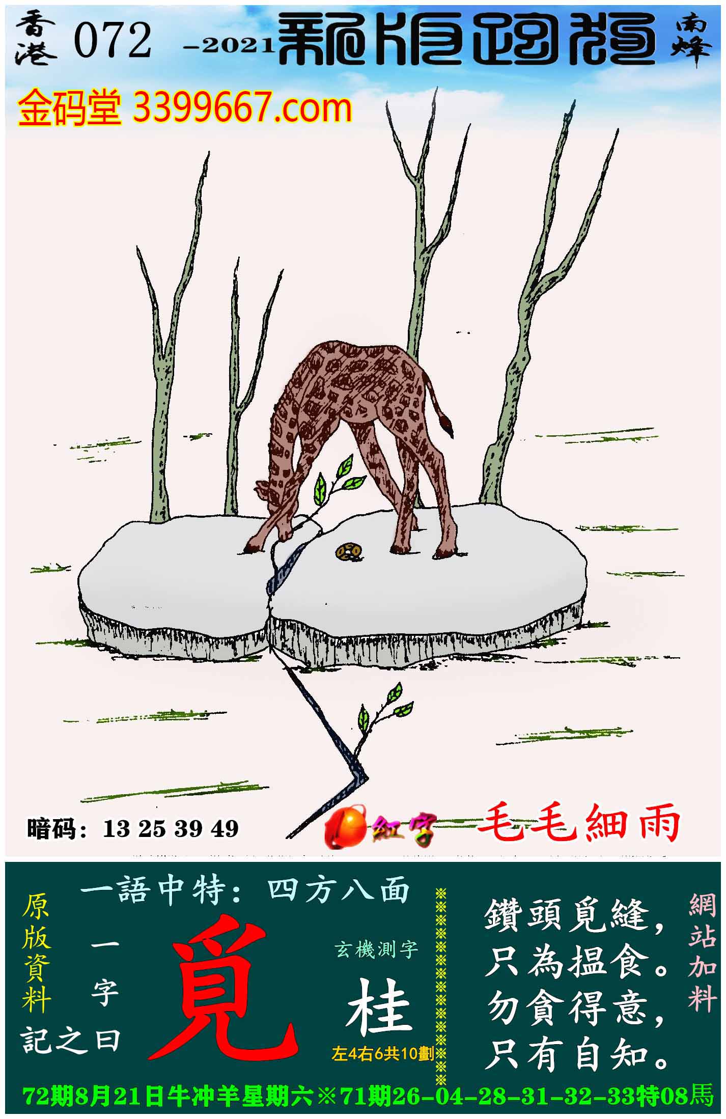 072期:新版跑狗一字記之曰【覓】玄機測字:《桂》