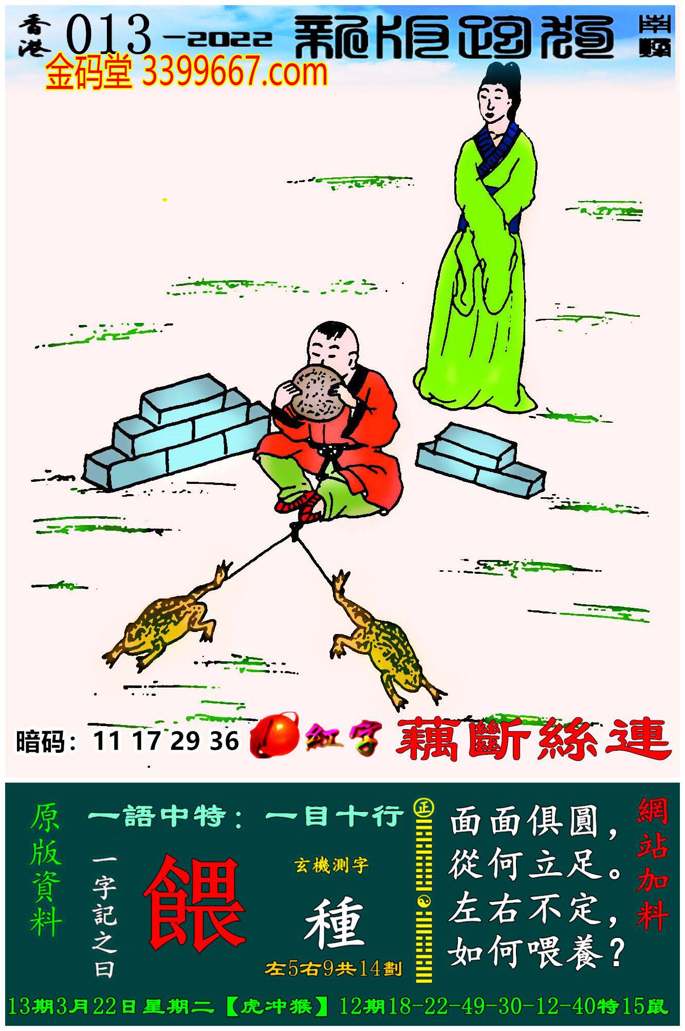 013期:新版跑狗一字記之曰【餵】玄機測字:《種》