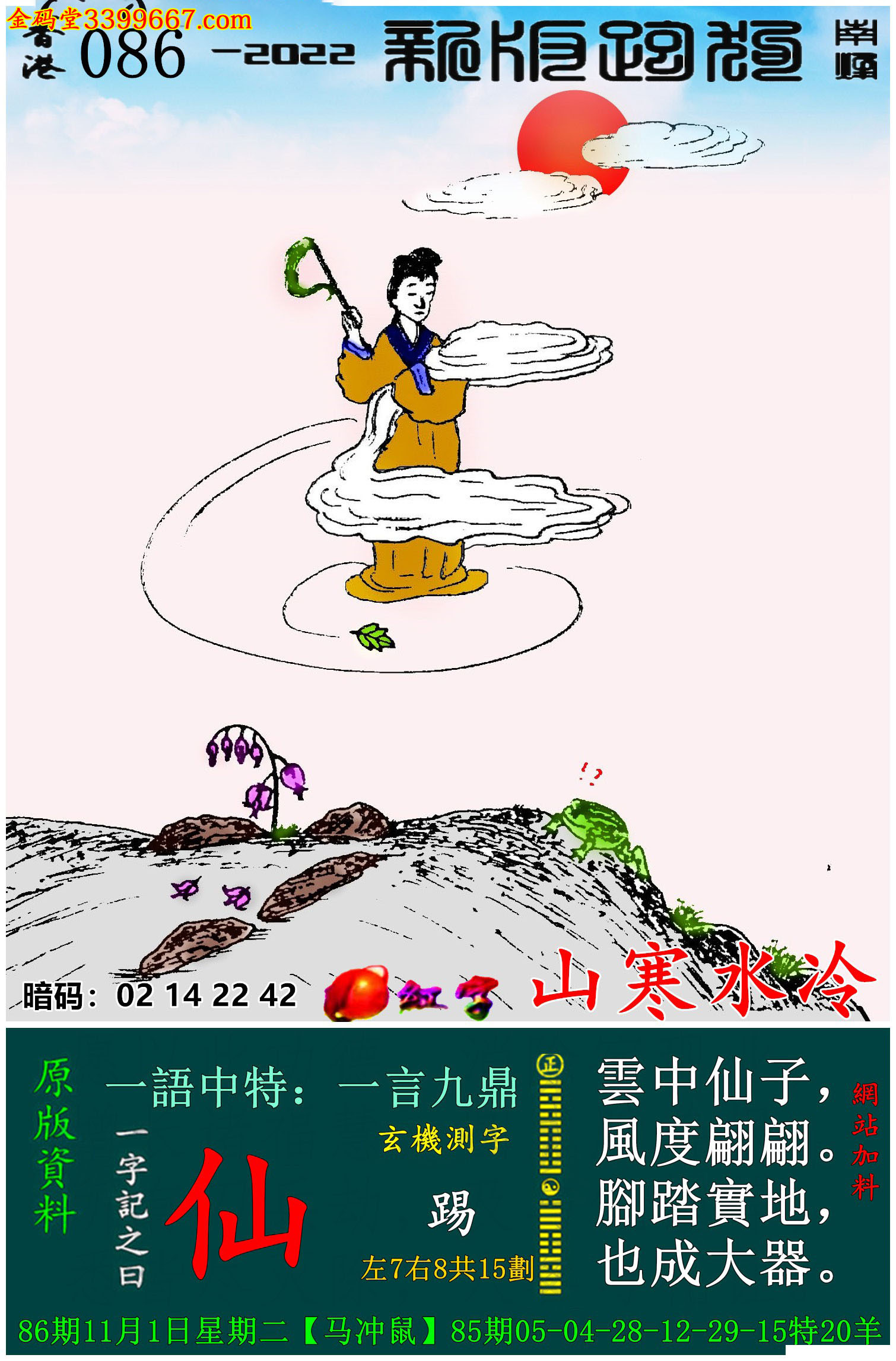 086期新版跑狗一字記之曰:【仙】
