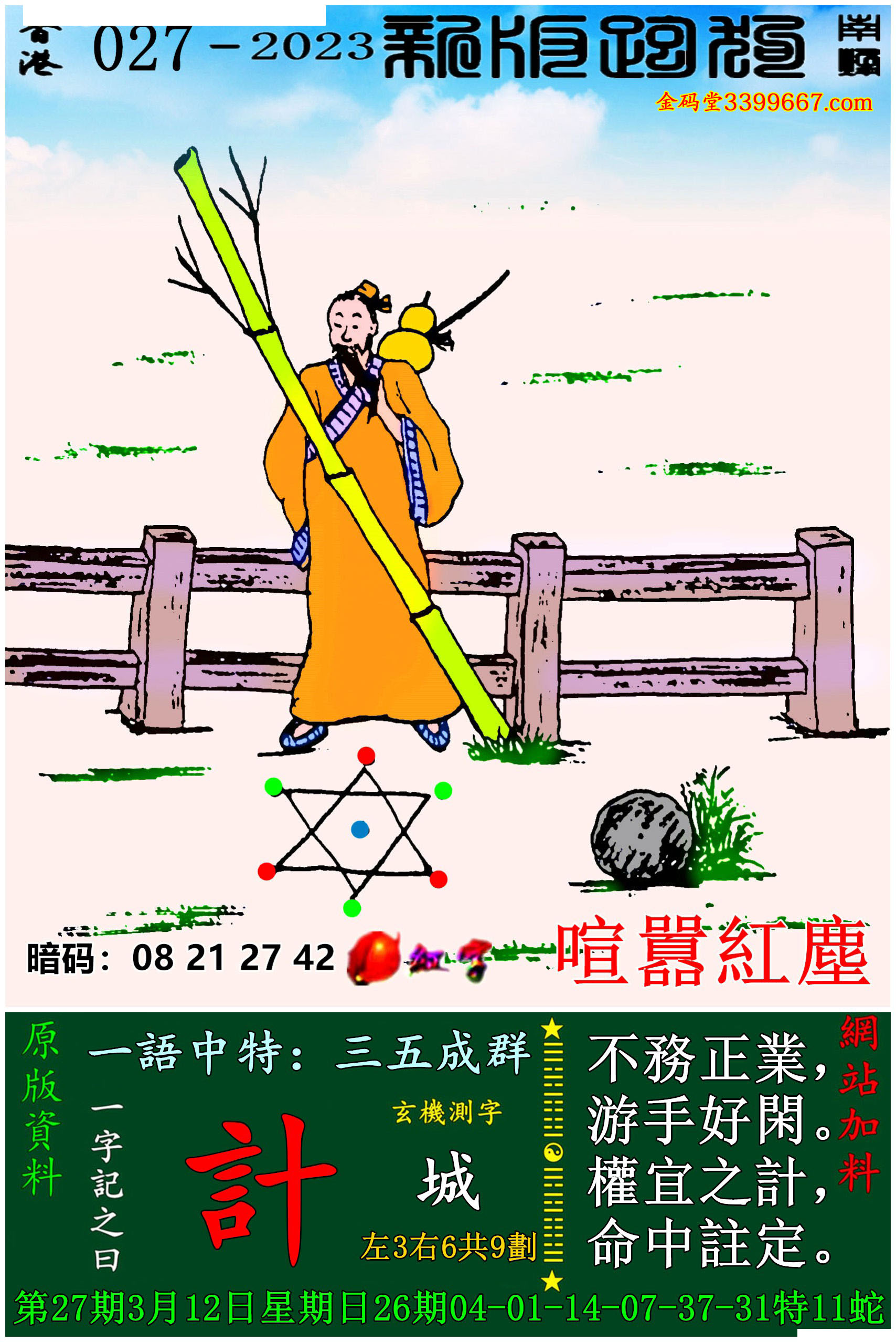 主题 : 027期:新版跑狗一字記之曰【計】玄機測字:《城》