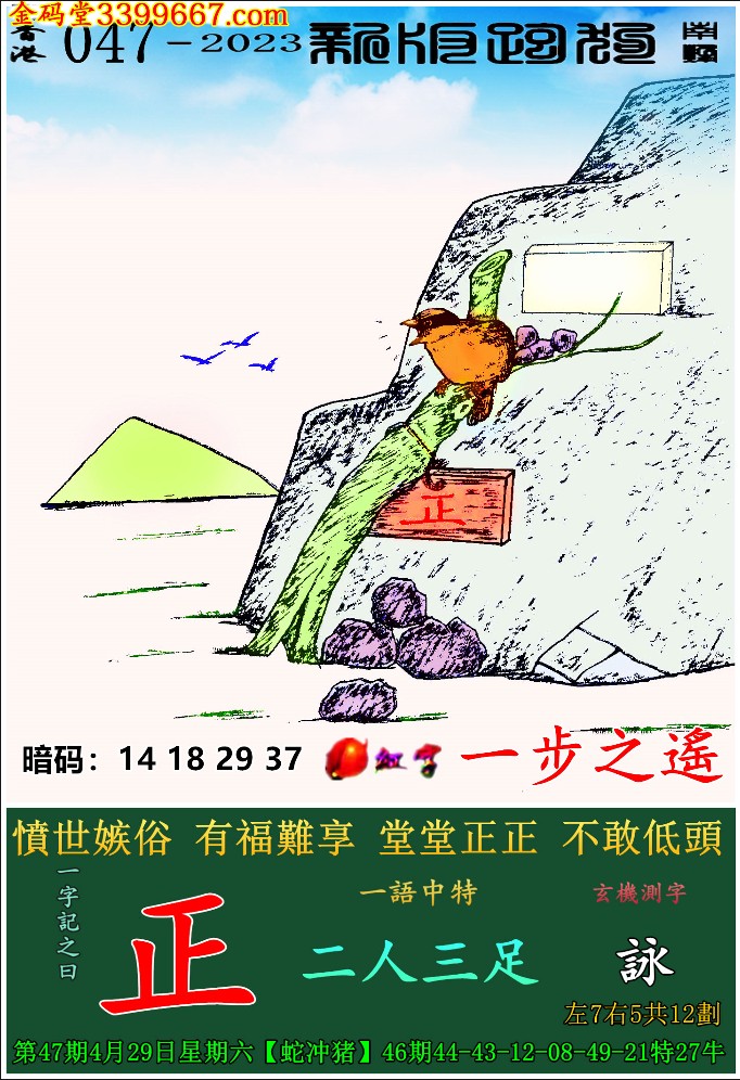 047期新版跑狗一字記之曰:【正】