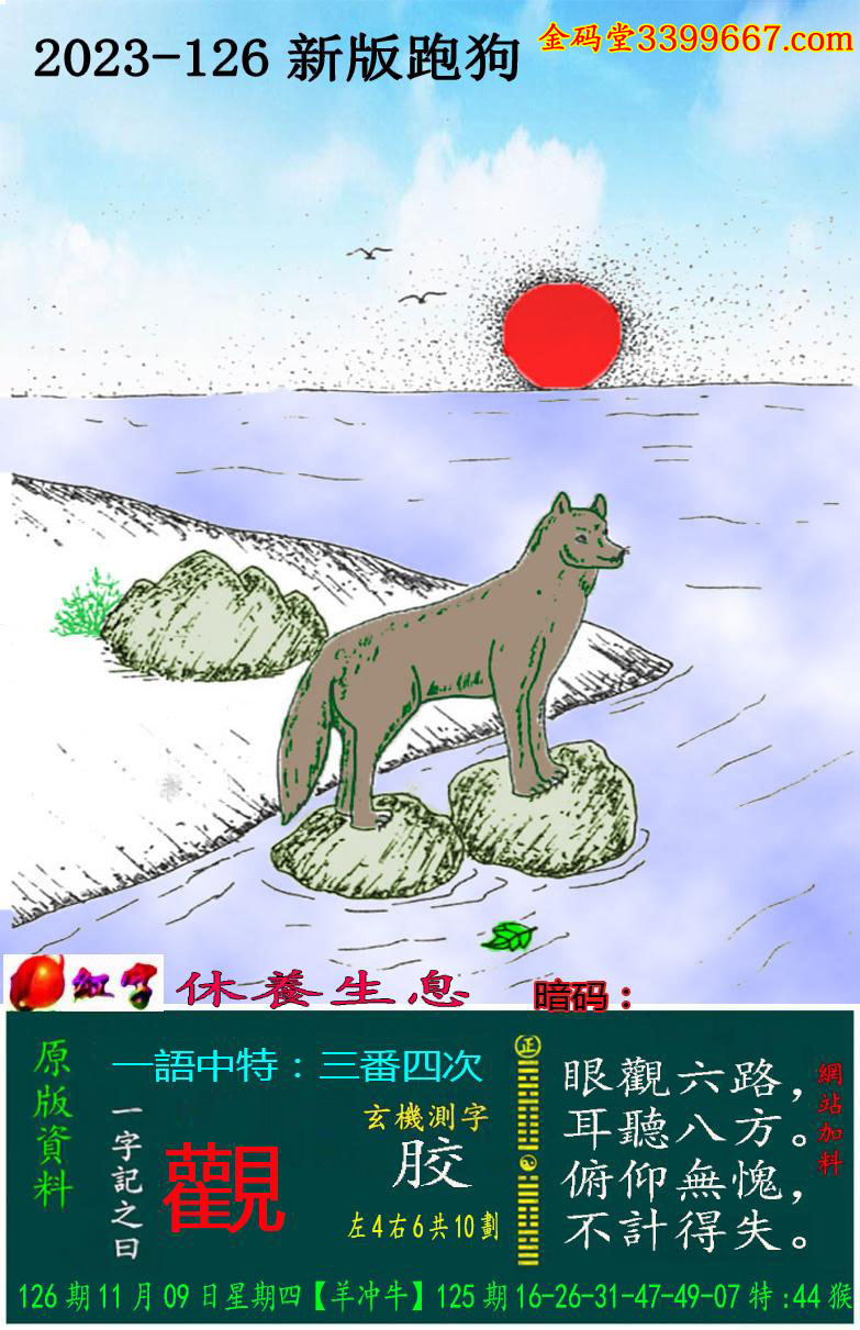 126期新版跑狗一字記之曰:【觀】