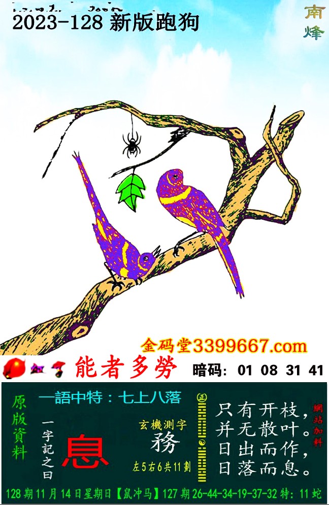 128期:新版跑狗一字記之曰【息】 玄機測字:《務》