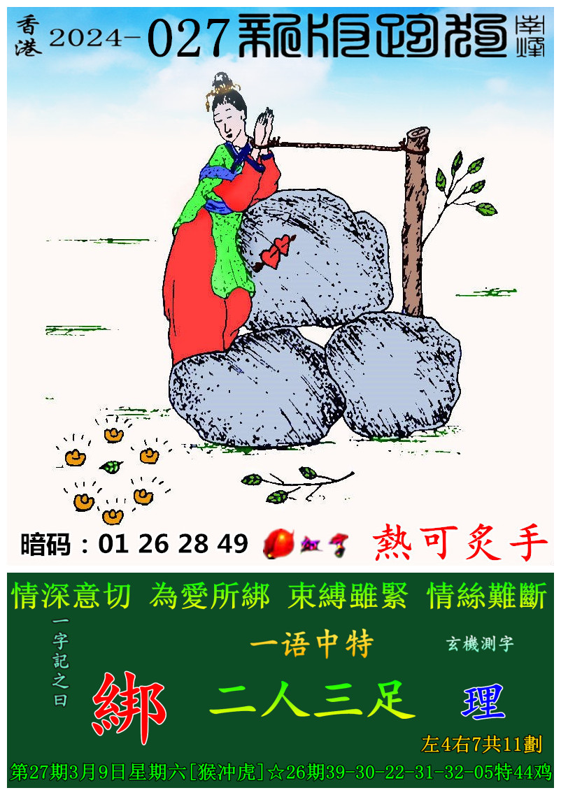 027期:新版跑狗一字記之曰【綁】 玄機測字:【理】