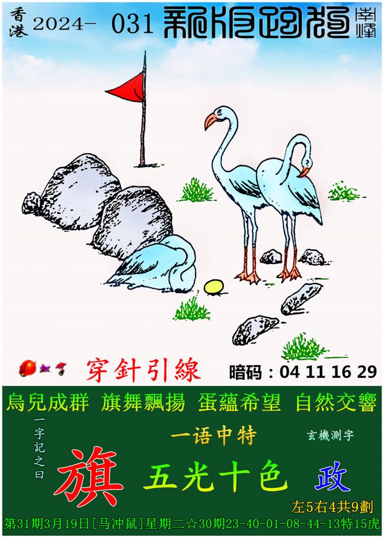031期:新版跑狗一字記之曰【旗】 玄機測字:【政】