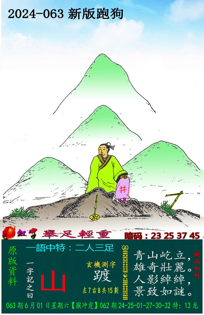 063期新版跑狗一字記之曰:【山】