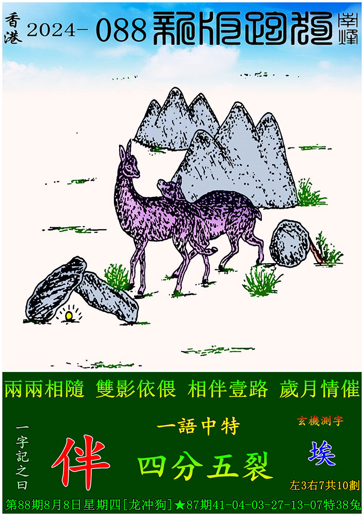 088期:新版跑狗一字記之曰【伴】 玄機測字:【埃】