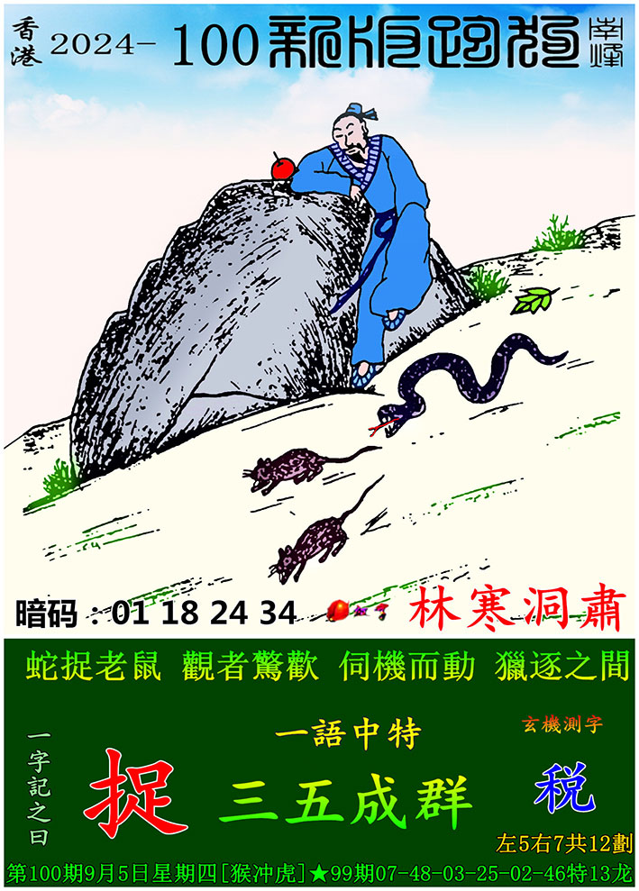 100期:新版跑狗一字記之曰【捉】 玄機測字:【税】