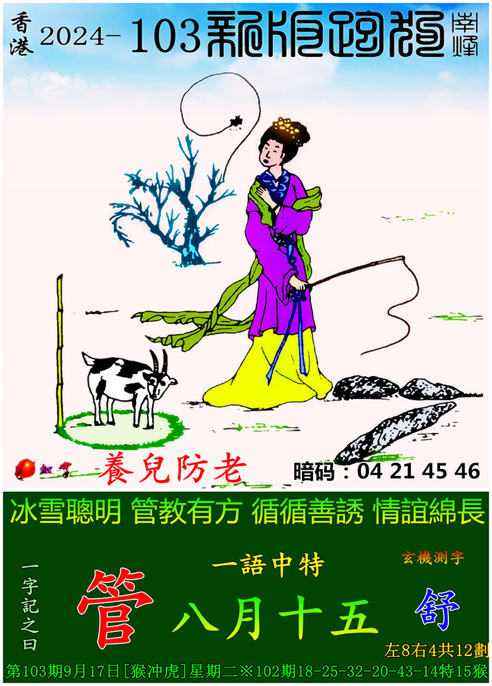 主题 : 103期:新版跑狗一字記之曰【管】 玄機測字:【舒】
