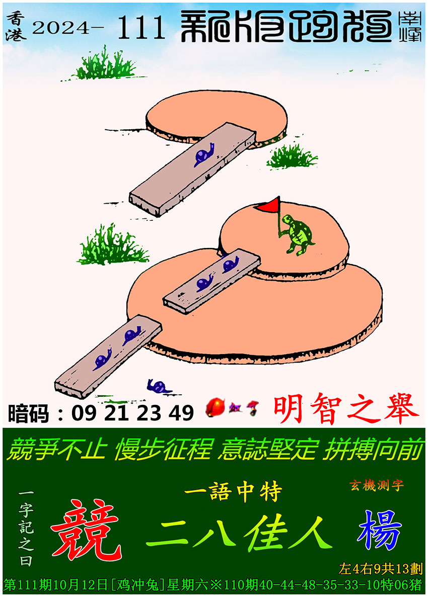 主题 : 111期:新版跑狗一字記之曰【競】 玄機測字:【楊】