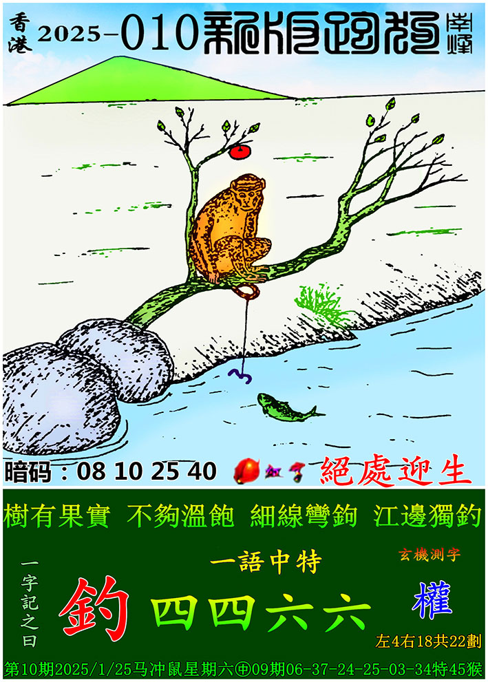 010期:新版跑狗一字記之曰【釣】 玄機測字:【權】