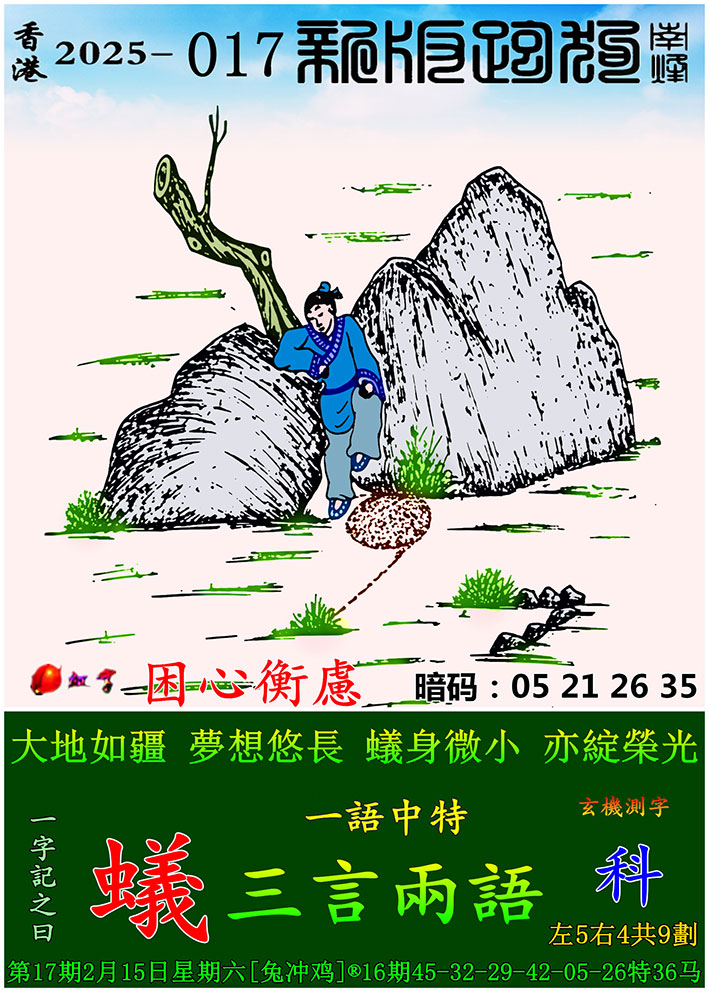 017期:新版跑狗一字記之曰【蟻】 玄機測字:【科】