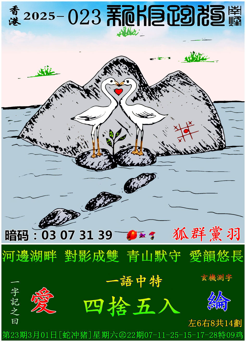 主题 : 023期:新版跑狗一字記之曰【愛】 玄機測字:【綸】