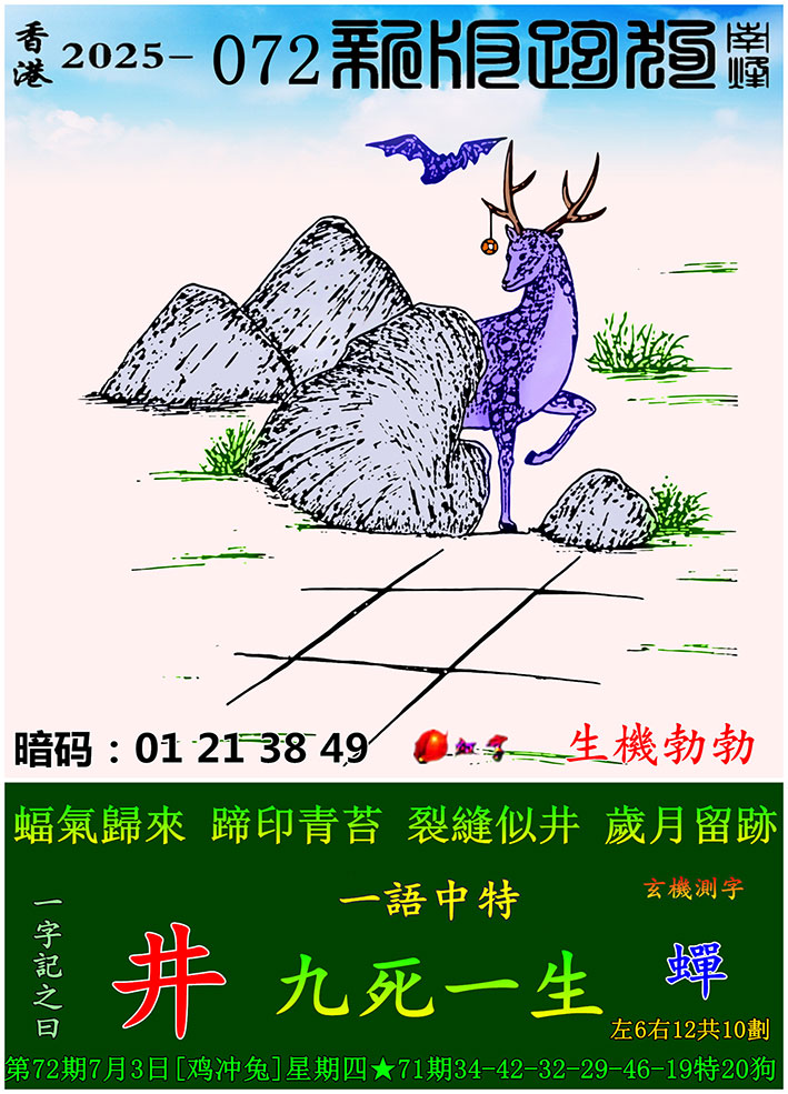 072期新版跑狗一字記之曰:【井】