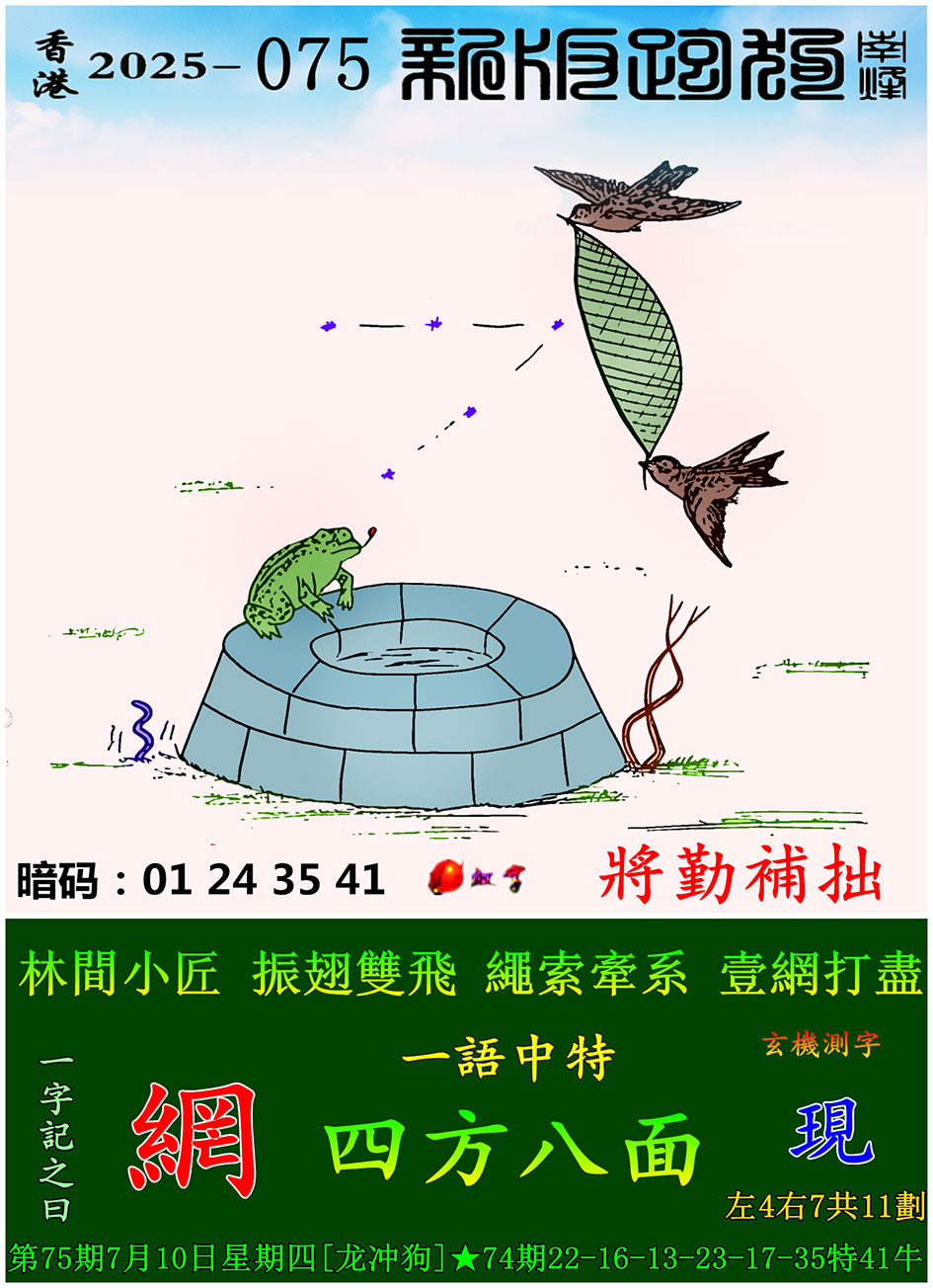 075期:新版跑狗一字記之曰【網】 玄機測字:【現】