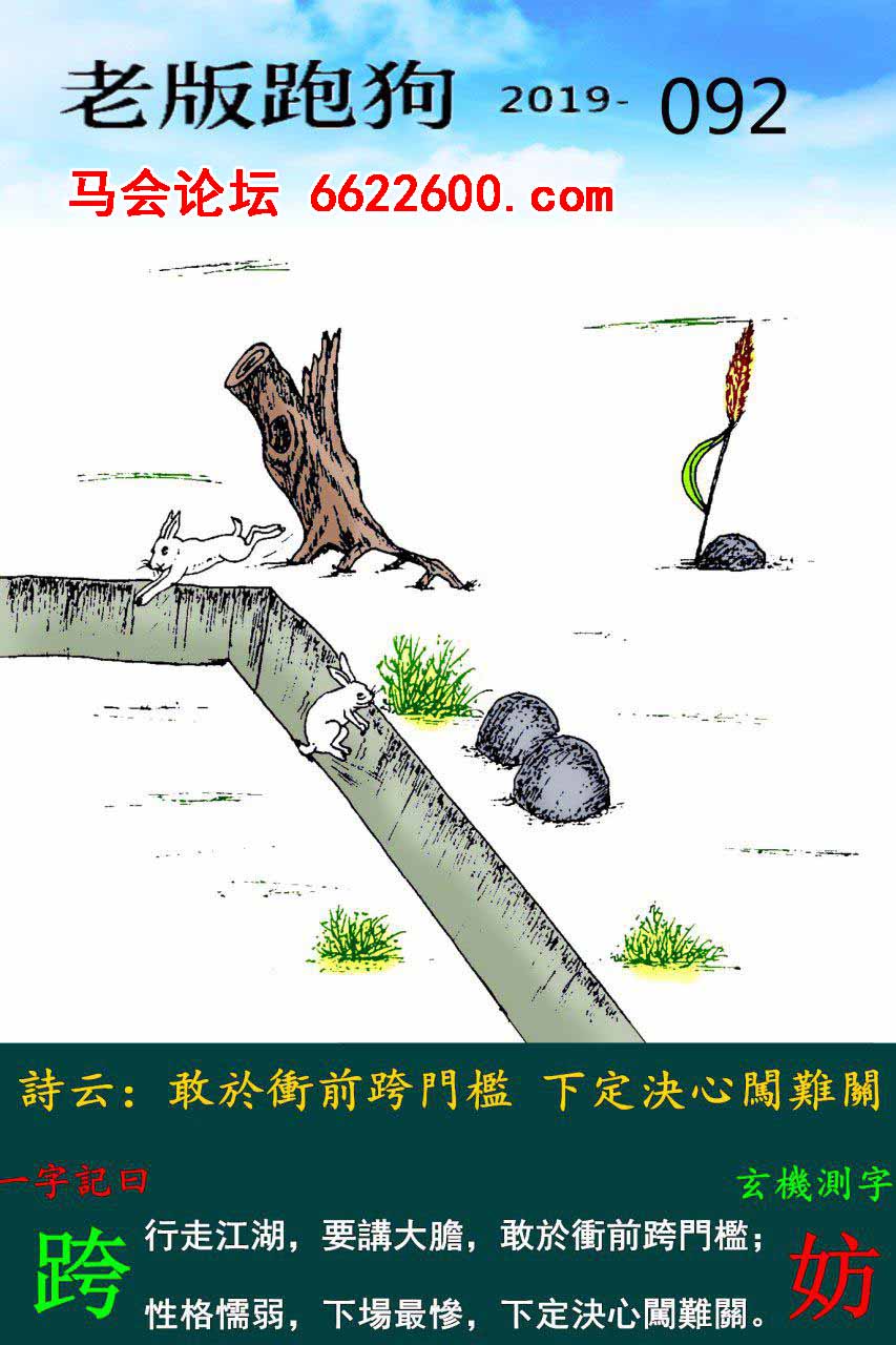 主题 : 092期:老版跑狗一字記之曰【妨】玄機測字《跨》