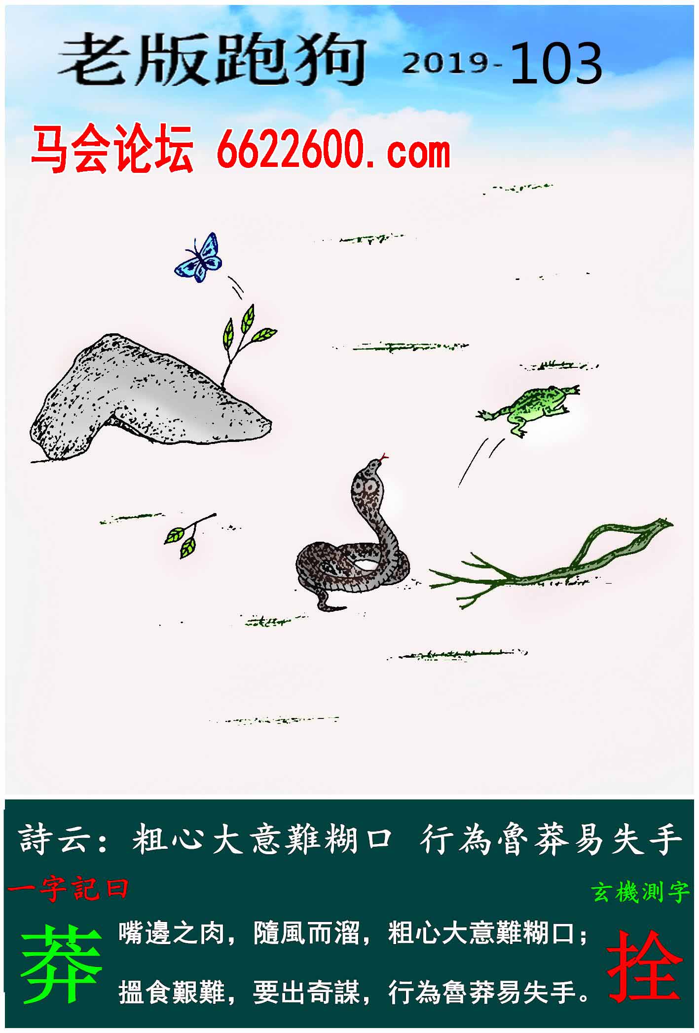 103期:老版跑狗一字記之曰【莽】玄機測字《拴》