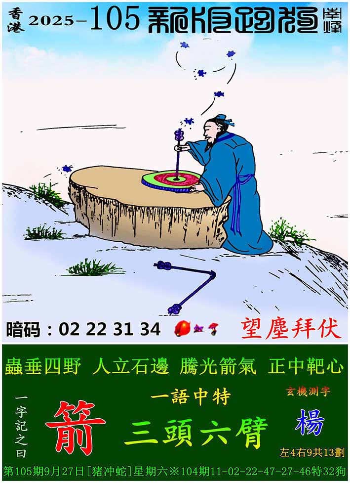 主题 : 105期:新版跑狗一字記之曰【箭】 玄機測字:【楊】