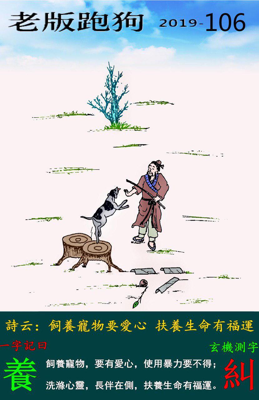 主题 : 106期老版跑狗一字記之曰:【養】玄機測字:《糾》