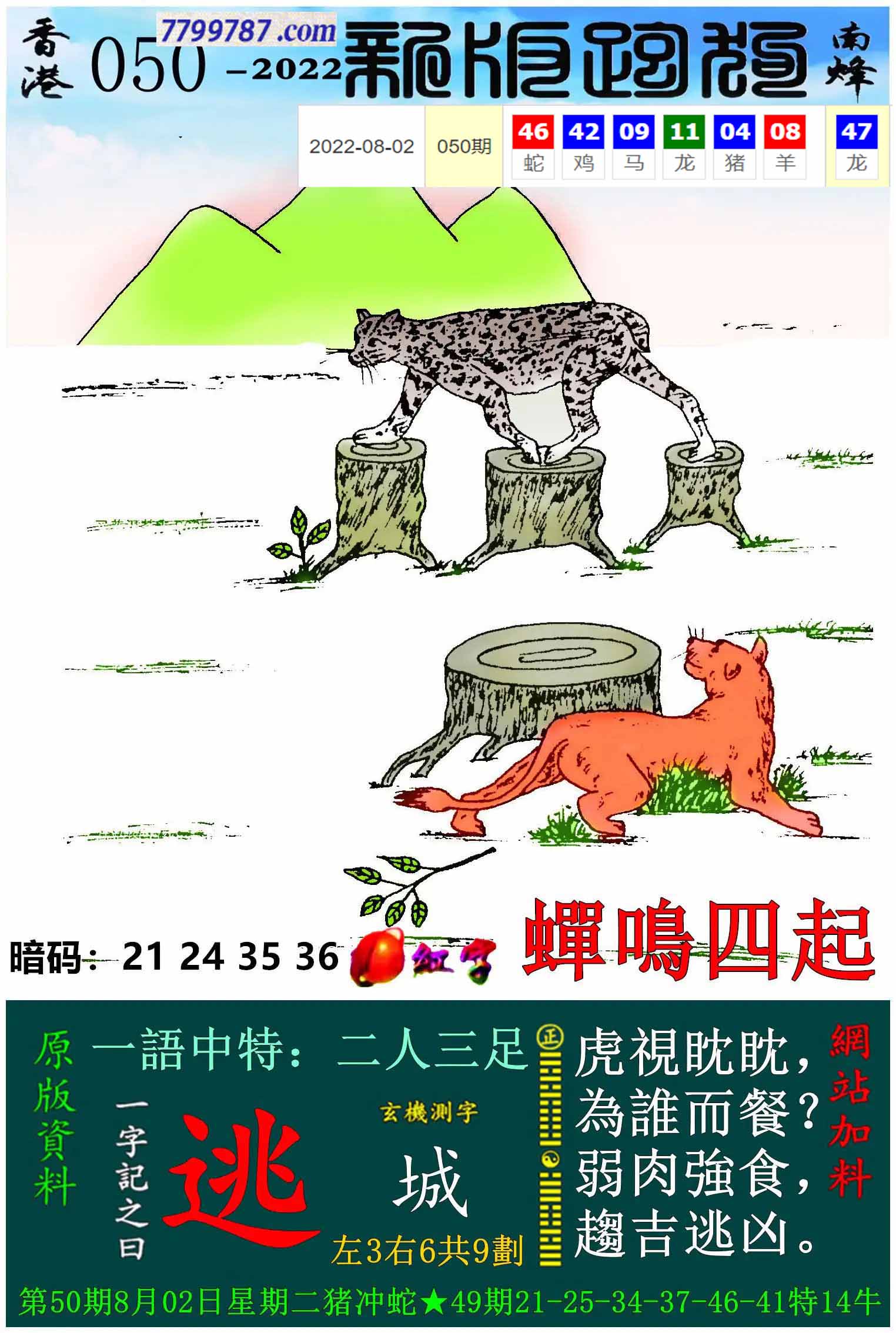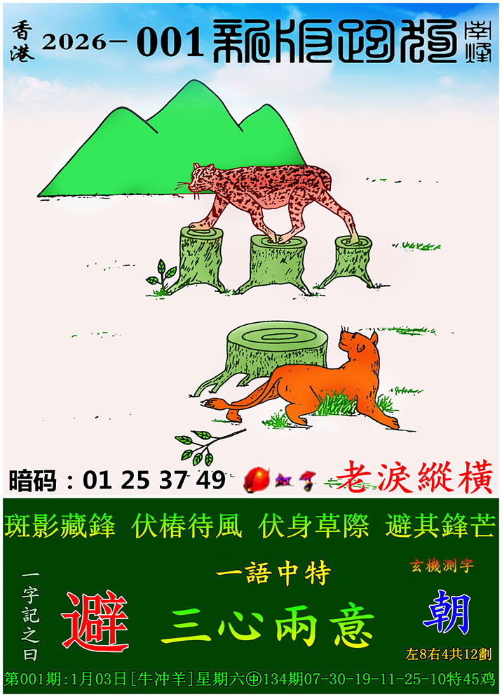 001期:新版跑狗一字記之曰【避】 玄機測字:【朝】