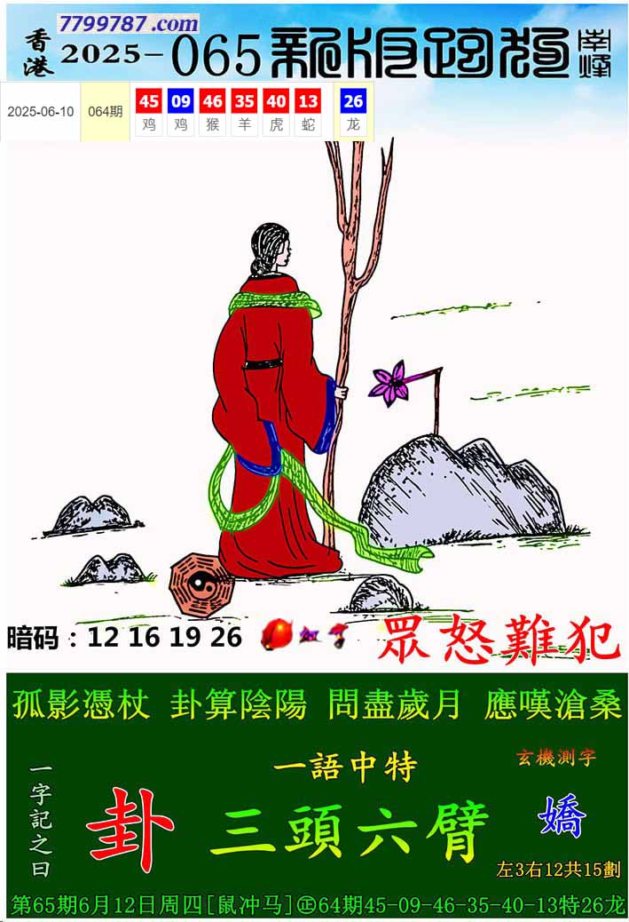 003期新版跑狗一字記之曰:【卦】