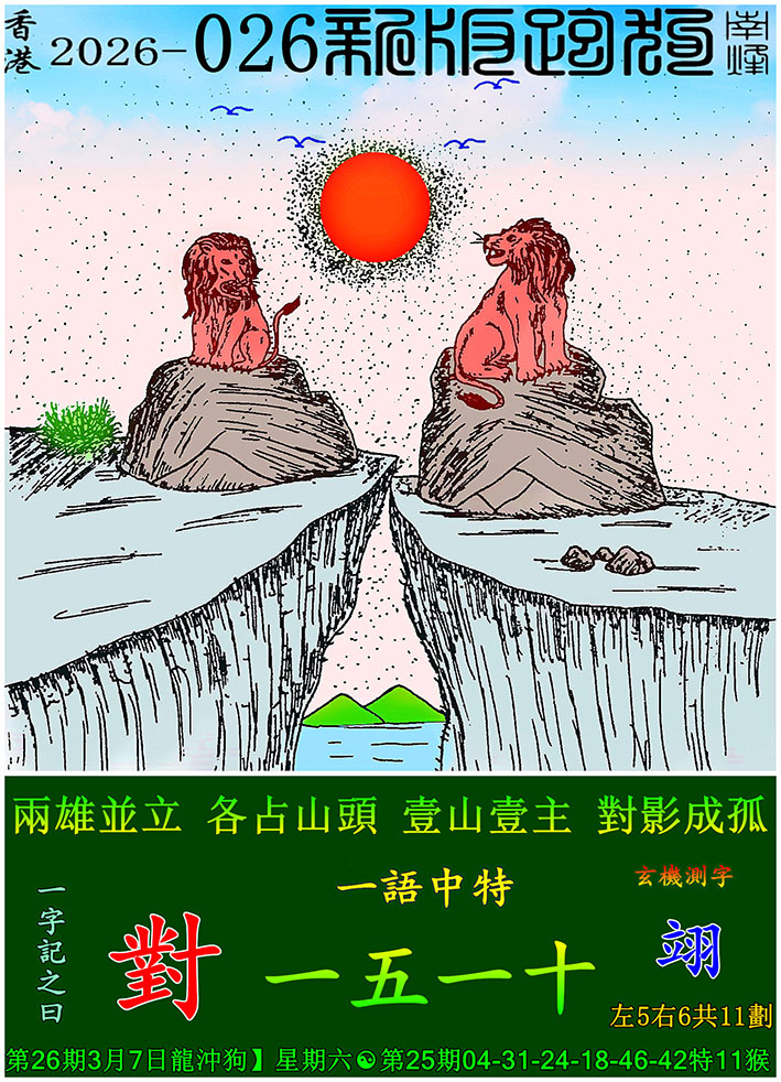 主题 : 026期:新版跑狗一字記之曰【對】 玄機測字:【翊】