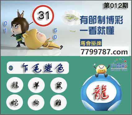 012期正版彩图挂:31 爆:龙 挂牌成语:乍毛变色 挂牌出肖:龙羊鼠蛇狗鸡