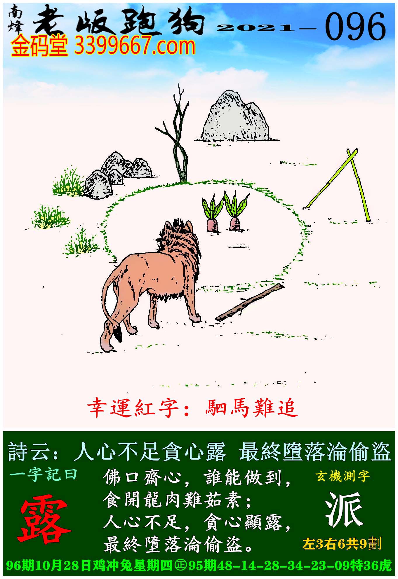 096期老版跑狗一字記之曰:【露】