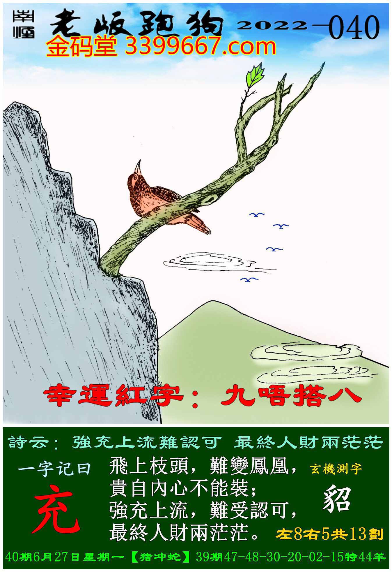 主题 : 040期老版跑狗一字記之曰:【充】玄機測字:《貂》