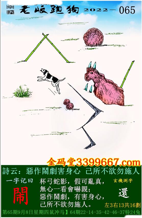 主题 : 065期老版跑狗一字記之曰:【閙】玄機測字:《還》