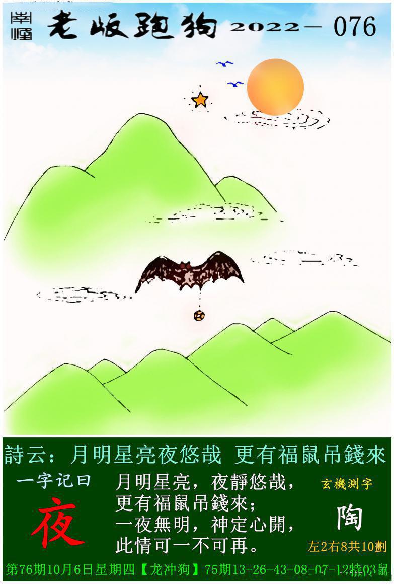 076期老版跑狗一字記之曰:【夜】