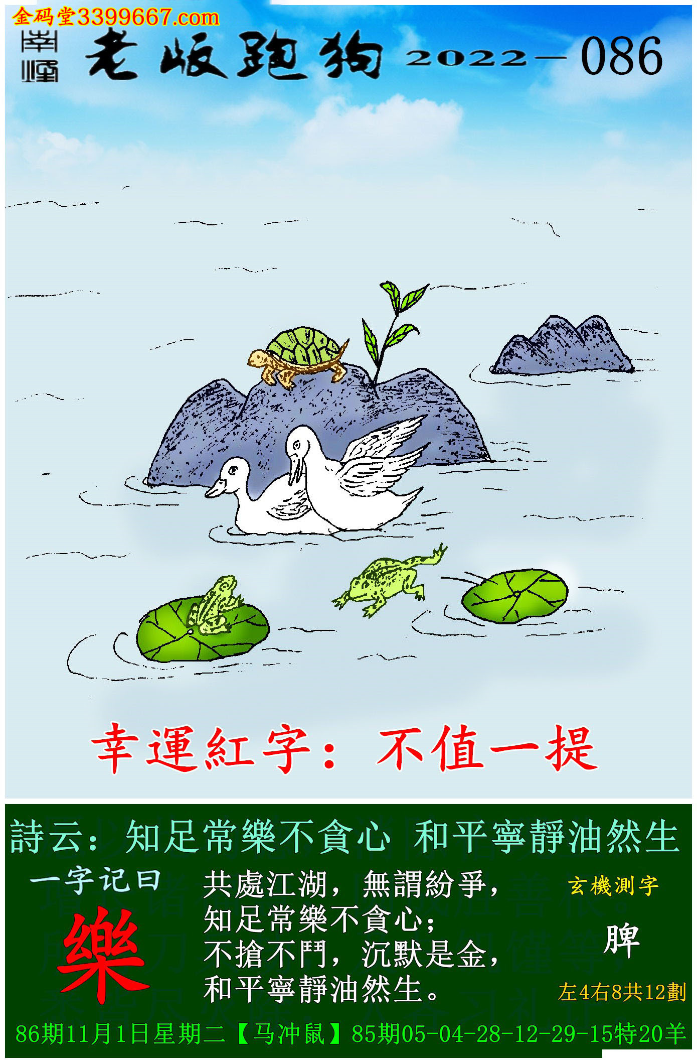 主题 : 086期老版跑狗一字記之曰:【樂】玄機測字:《脾》