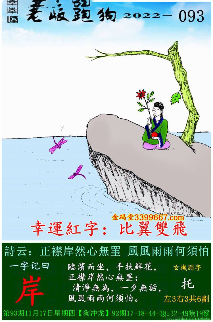 主题 : 093期老版跑狗一字記之曰:【岸】玄機測字:《托》