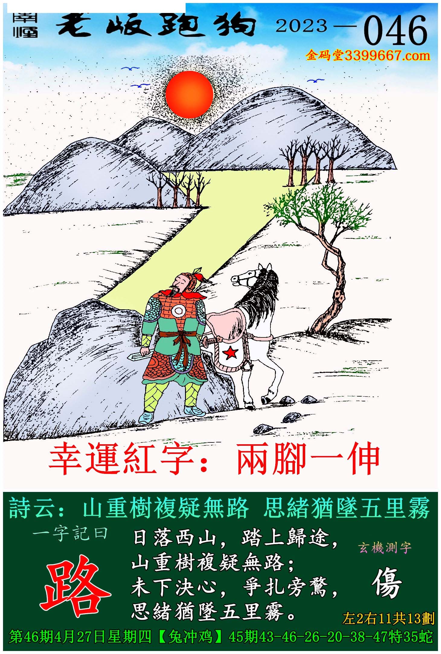 046期老版跑狗一字記之曰:【路】