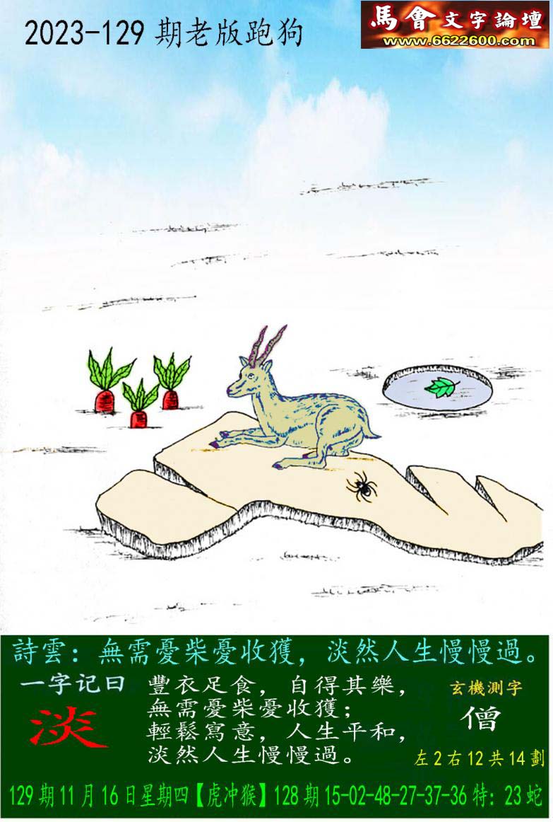 129期老版跑狗一字記之曰:【淡】