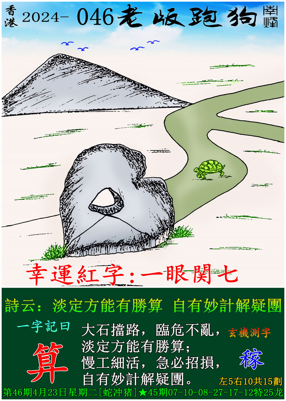 046期老版跑狗一字記之曰:【算】