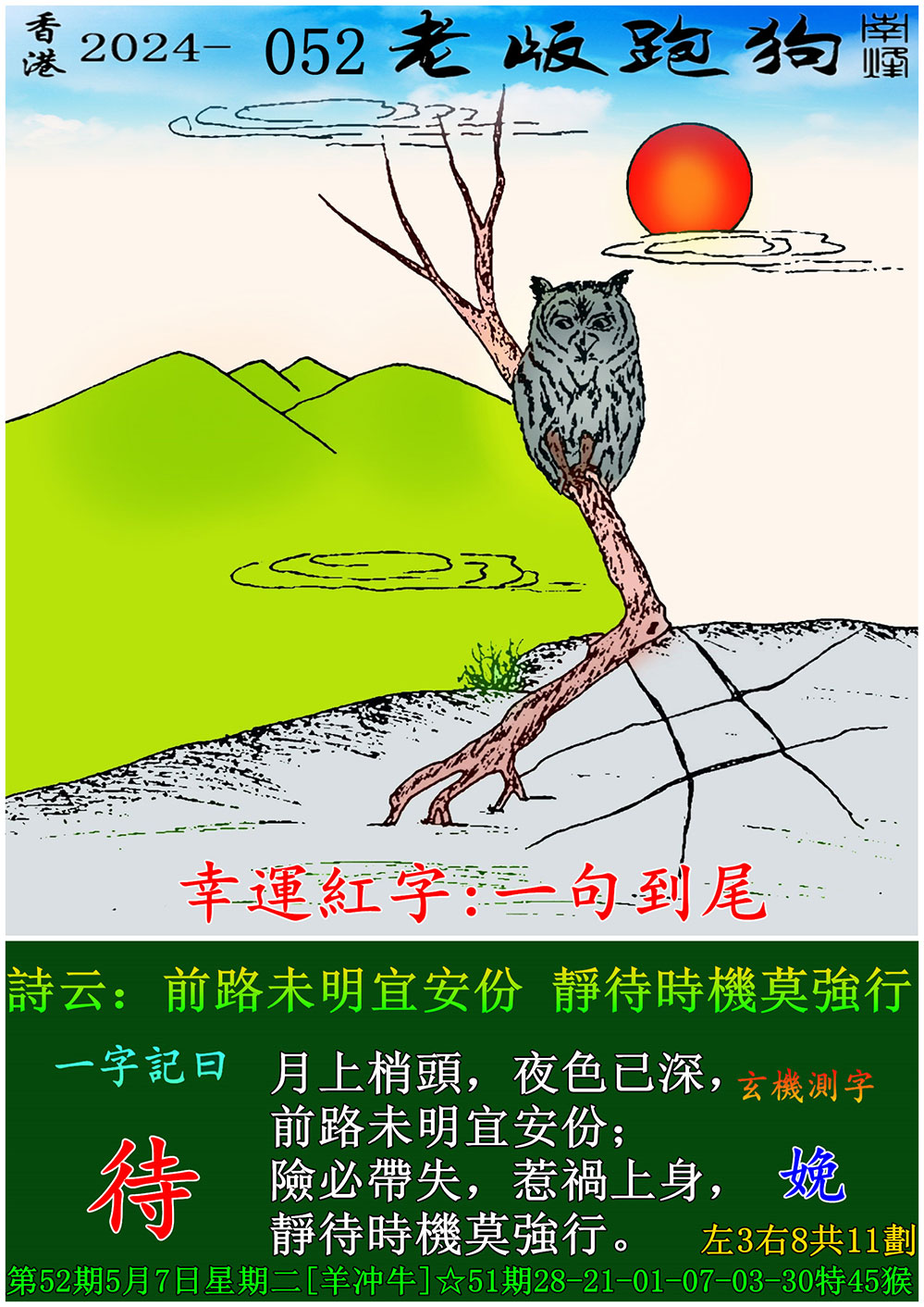 052期老版跑狗一字記之曰:【待】 玄機測字:《娩》