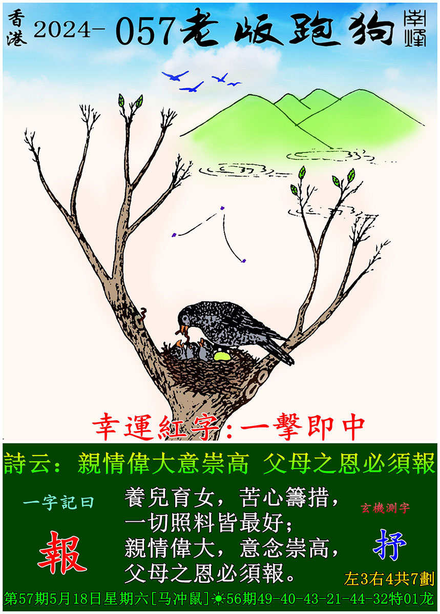 主题 : 057期老版跑狗一字記之曰:【報】 玄機測字:《抒》