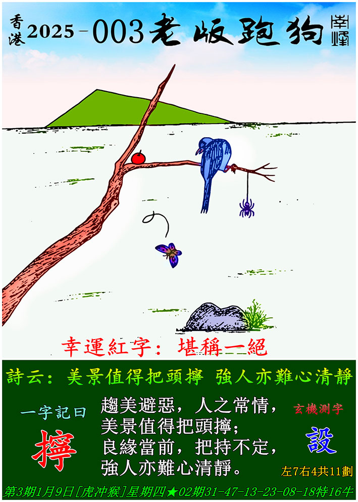 003期老版跑狗一字記之曰:【擰】 玄機測字:《設》