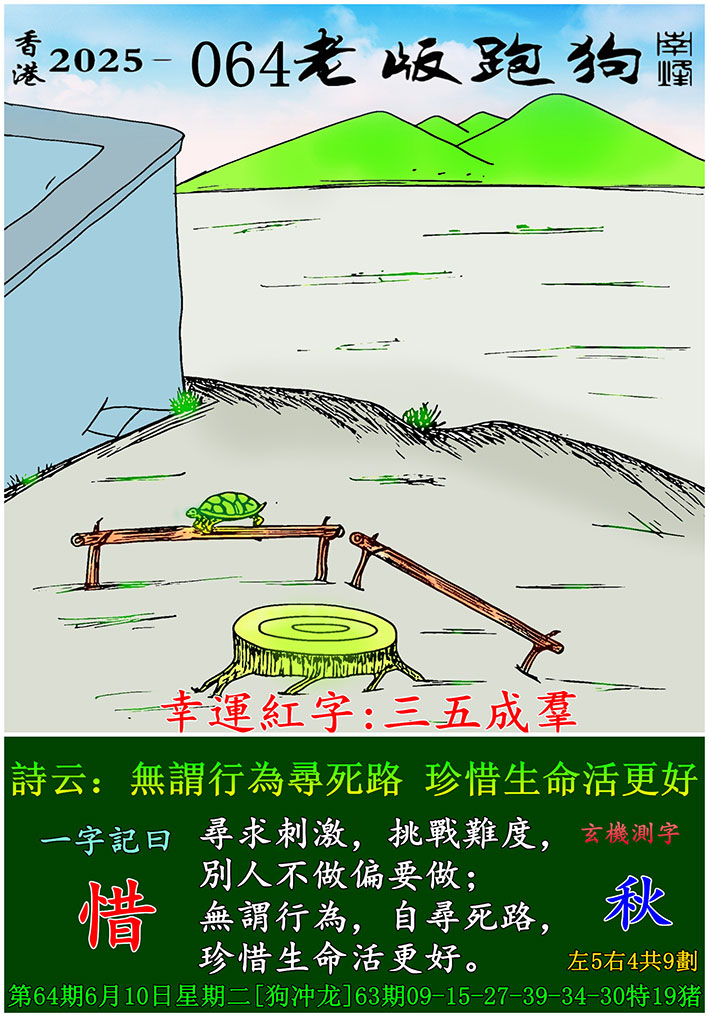 主题 : 064期老版跑狗一字記之曰:【惜】 玄機測字:《秋》