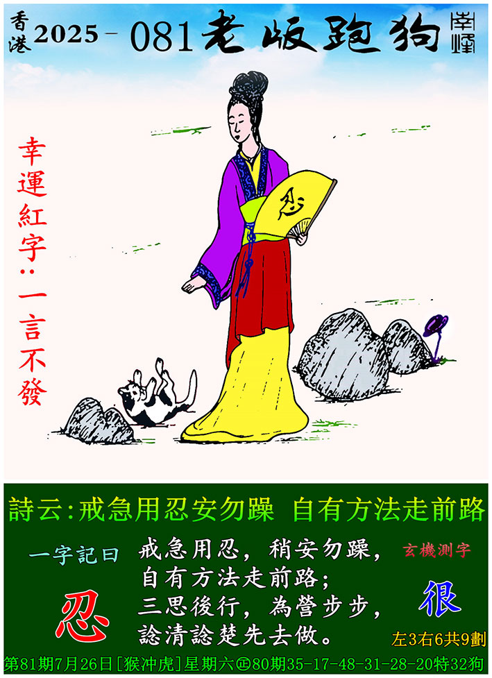 主题 : 081期老版跑狗一字記之曰:【忍】 玄機測字:《很》