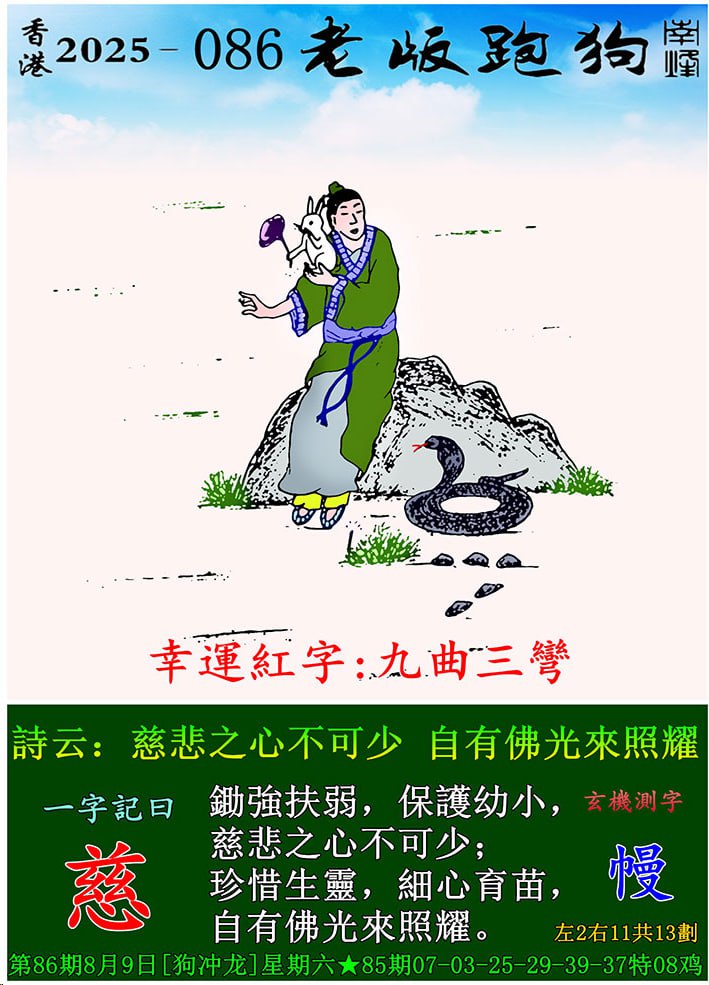 086期老版跑狗一字記之曰:【慈】