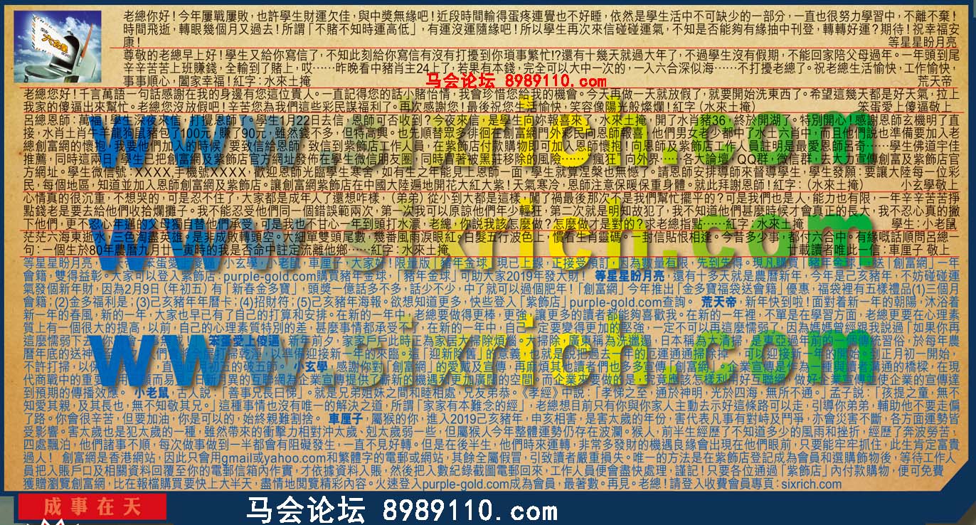 【4】呂總恩師:萬福!學生深夜來信,打攪恩師了。學生1月22日去信,恩師可否收到?今夜來信,是學生向你報喜來了水來土掩,開了水肖豬36終於開湖了。特別開心!感謝恩師玄機明了直接水肖土肖牛羊龍狗鼠豬包了100元,赚了90元,雖然錢不多:但特高興。也先順替眾多徘回在創富網門外彩民向恩師報喜,他們男女老少都中了水土六肖中,而且他們說也準備要加入老總創富網的懷抱,我要他們加入的時候,要致信給恩師,致信到紫飾店工作人員,在紫飾店付款購物即可加入恩師懷抱!向恩師及紫飾店工作人員註明是最愛恩師呂奇……學生佛道宇佳推薦,同時這兩日,學生已把創富網及紫飾店官方網址發怖在學生微信朋友圈,同時冒曾被黑莊移除的風……"瘋狂"向外界……各大論壇,QQ群, 微信群去大力宣傅創富及紫飾店管方網址。學生微信號:XXXX手機號XXXX,歡迎恩師光臨學主寒舍!如有生之年能見上恩師一面,學生就算涅槃也無憾了。請恩師安排導師來督導學生,學生發願:要讓大陸每一位彩民,每個地區,知道並加入恩帥創富網及紫飾店。讓创富網紫飾店在中國大陸啟遍地開花大紅大紫!天氣寒冷,恩師注意保暖保重身體。就此拜謝恩師!紅字(冰來土掩) ---小玄學敬上